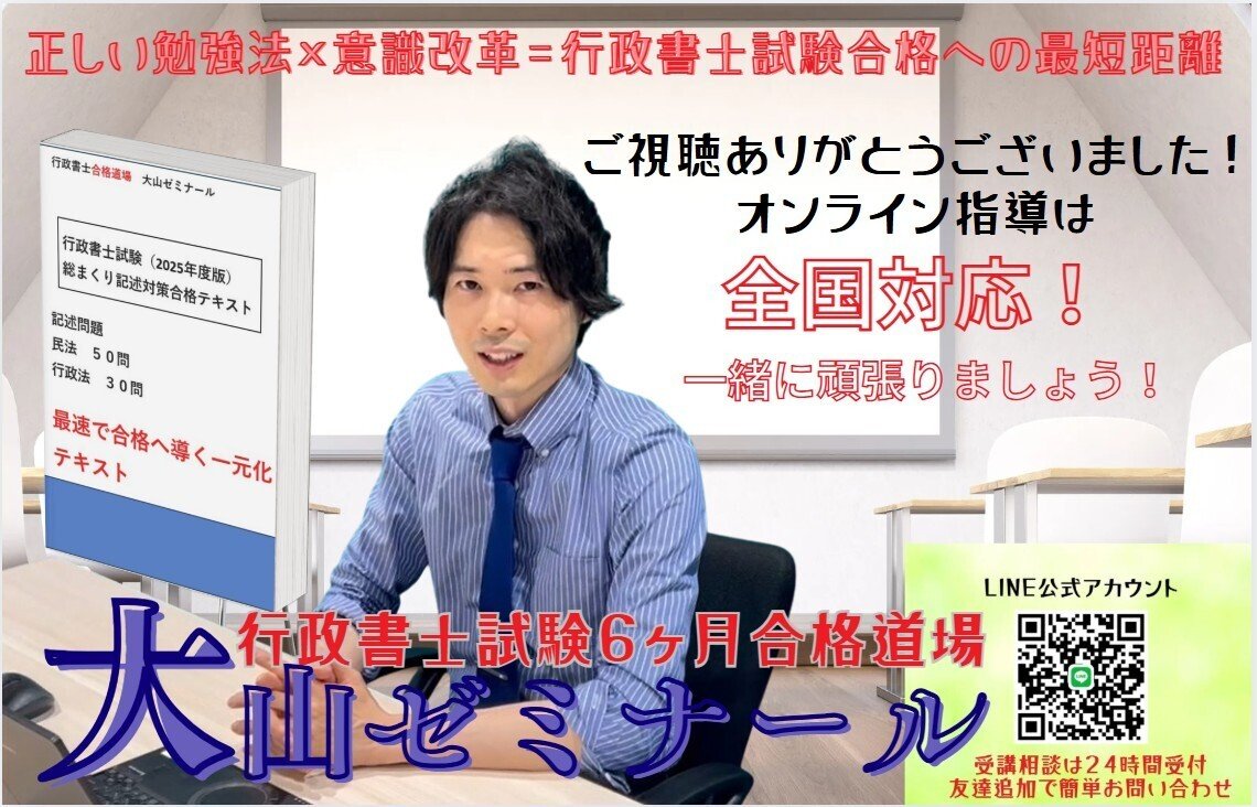 私は行政書士試験の記述対策講座をはじめとした行政書士試験対策講座を提供しております。